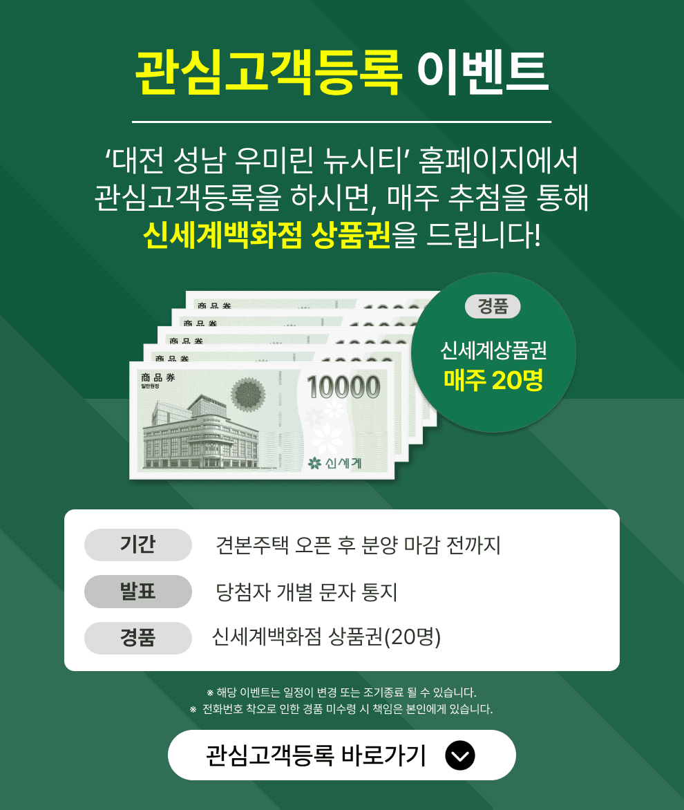 관심고객 등록 시 분양정보 및 모델하우스 위치를 휴대전화로 발송 및 안내드립니다. 모델하우스 방문은 예약제로 운영되며 전화 또는 관심고객등록을 통해 방문예약 부탁드리겠습니다.